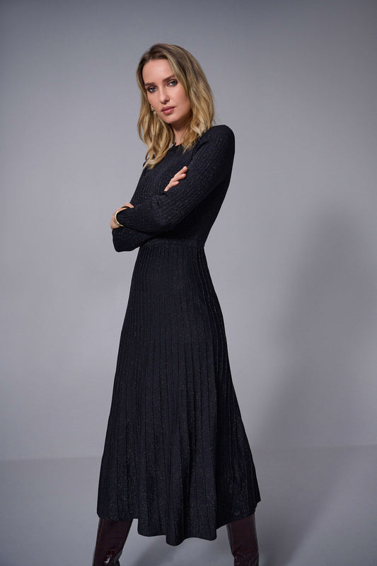 Knit Dress with Contrast Shirt Collar and Pockets 253995