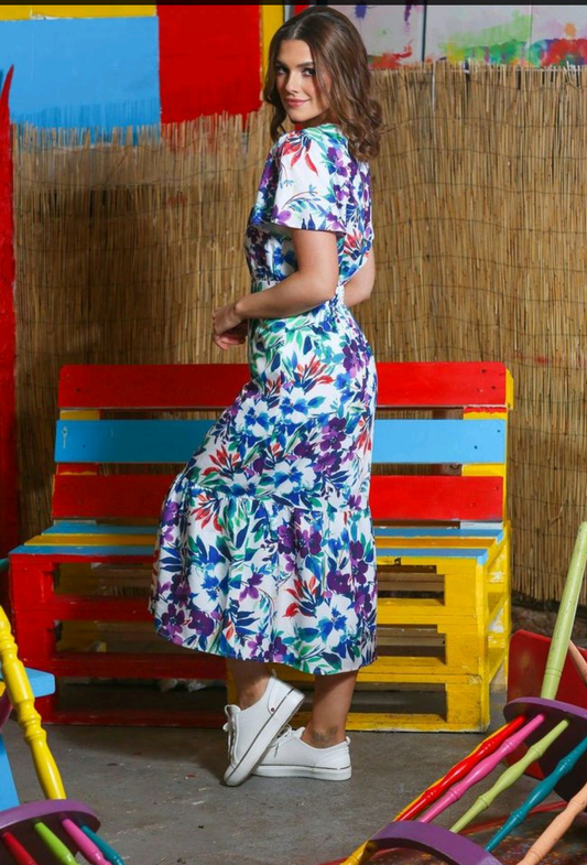 Aqua Ruffle Stretch Dress – By Swan Paris