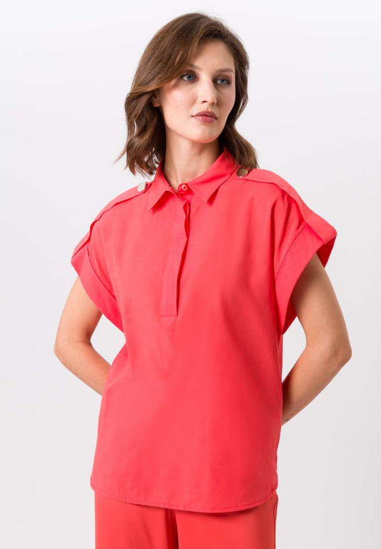 Tuzzi Navy, Red, and White Striped Patterned Blouse