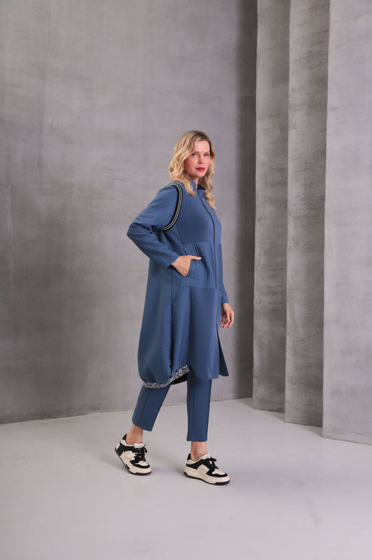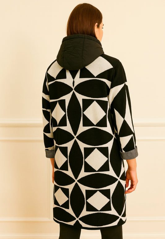 FRANK LYMAN Quilted Geometric Knee-Length Coat Style- 243416
