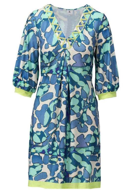 Carla Ruiz – Green Abstract Print Dress with Feather Cuff Detail 52570