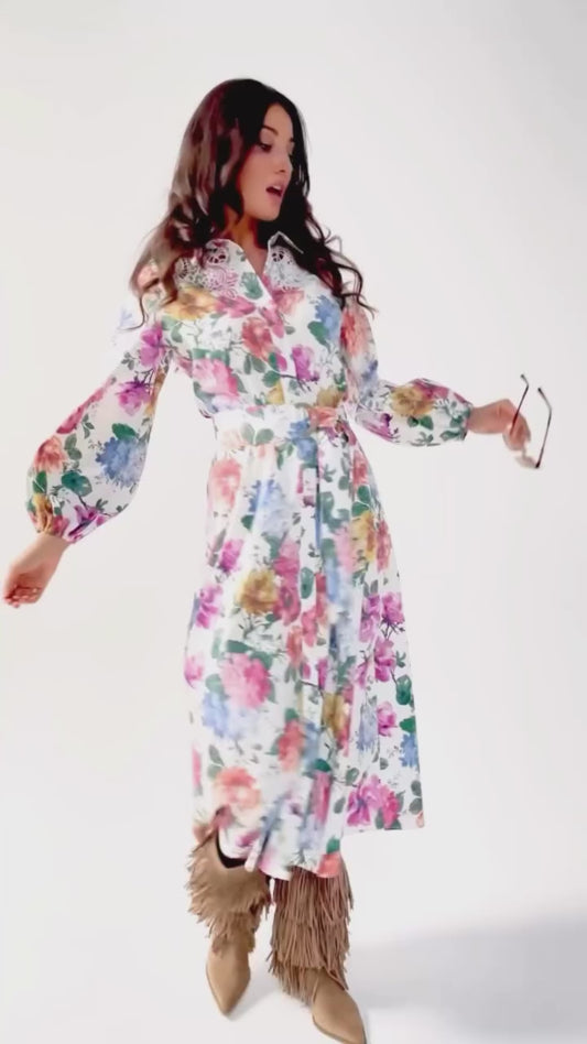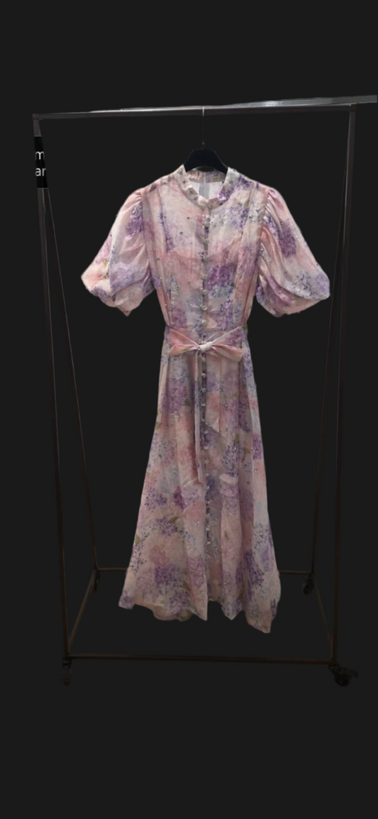 ✨ Lilac Floral Puff Sleeve Midi Dress