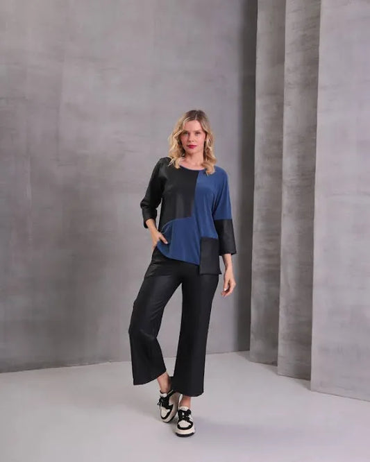 Joseph Ribkoff Black Top with Novelty Fringe.