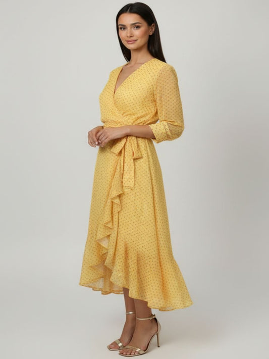 Kate & Pippa ballerina lemon polka dot wrap midi dress