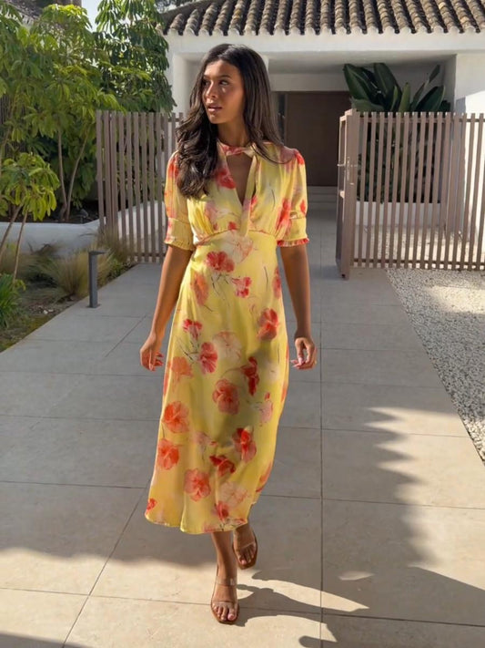Kate & Pippa kimber lemon blossom tie neck midi dress