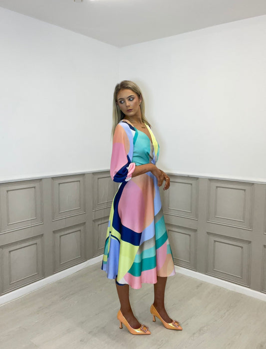 Veromia Soft Apricot Satin Trim Occasion Dress