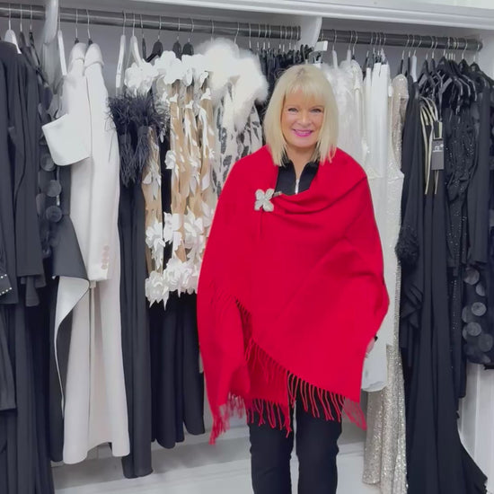 Ideal draped over a camel coat, black blazer, or winter knit. The perfect finishing touch for anyone who wants warmth, texture, and a flash of refined color — classic design with confident energy.