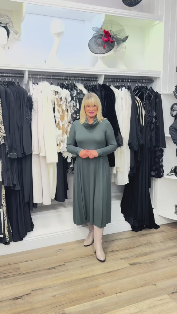 Noen Cowl Neck Pocket Dress – Relaxed A-Line Midi